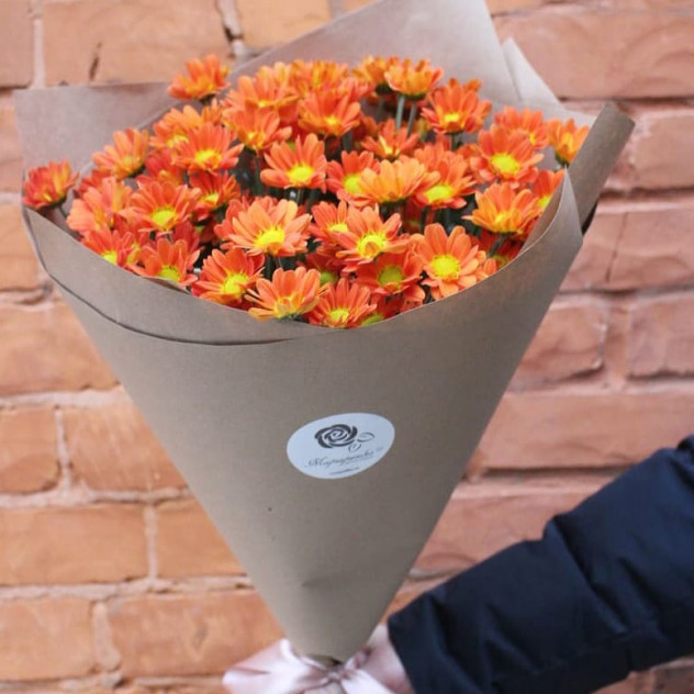Оранжевый, цвет очень полезный! Учеными доказано, что оранжевый - нормализует аппетит, и способствует усвоение витаминов. К тому же, оранжевый цвет символизирует решимость и смелость, а значит - отлично подойдет коллегам по работе или начальнику. В любом случае - такие хризантемы - самый лучший подарок по любому поводу.