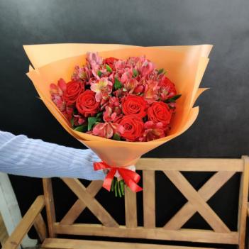 Состав: Упаковка для букета: крафт-бумага, Роза оранжевая 60 см 51шт.