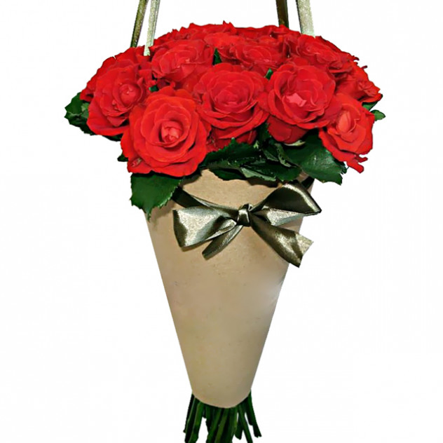 Состав: Роза красная 60 см 19шт., Конус малый крафтовый.