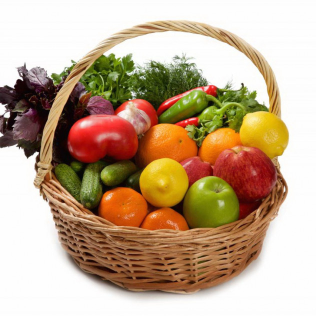 Состав: сезонные фрукты и овощи (зелень, трава, огурцы, помидоры, яблоки, груши, бананы ), 5 кг.